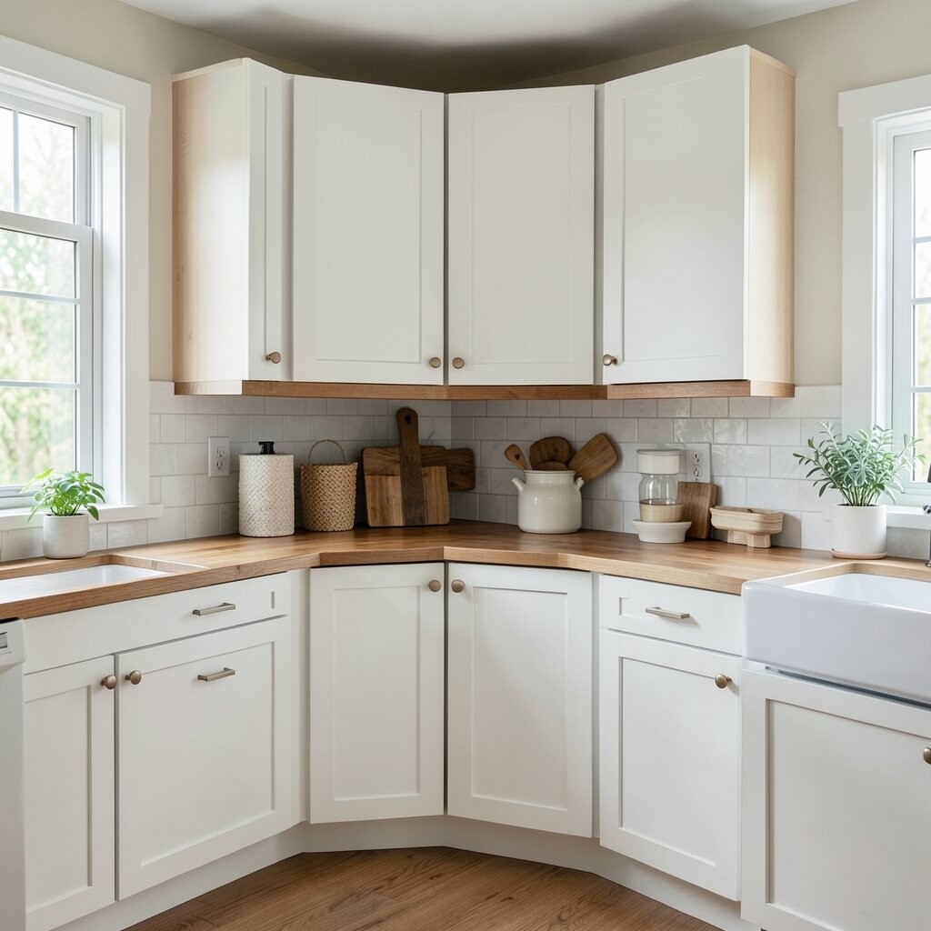 17. White Cabinets with Wood Accents for a Cozy Mix