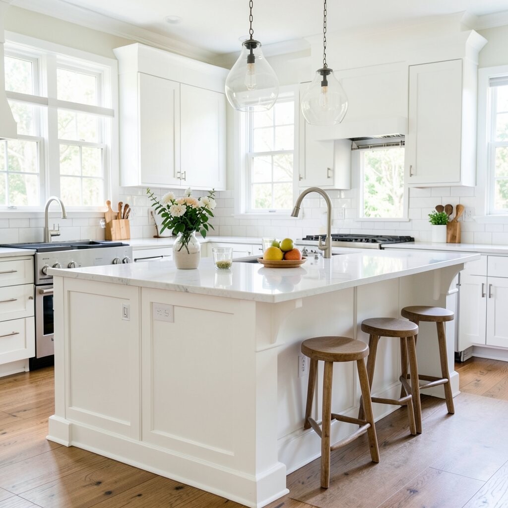 2. Bright White Farmhouse Island