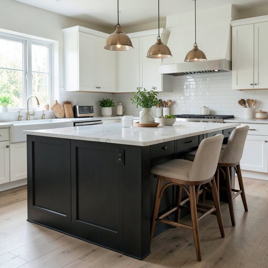 This choice works well in modern kitchens that want a strong focal point. It is unique because black gives the island a rich, high-end look without needing extra decoration.