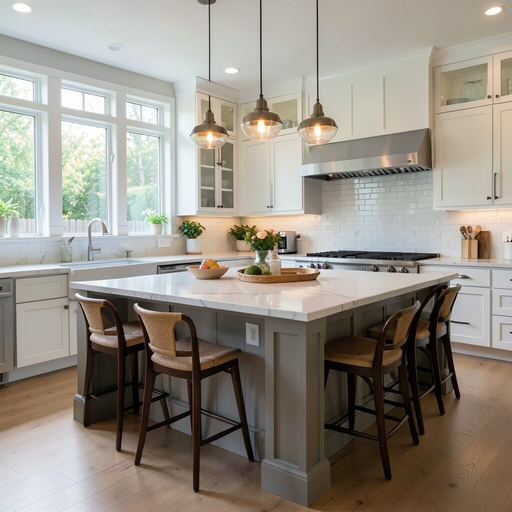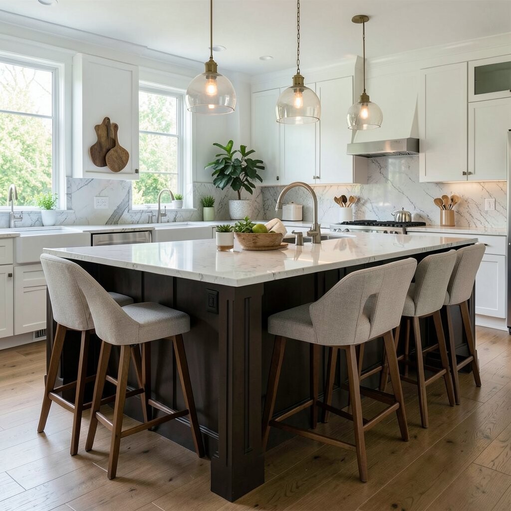 Pick stools that match the island finish or add soft cushions for comfort. Cost can be medium, and the extra seating makes the space feel more useful.