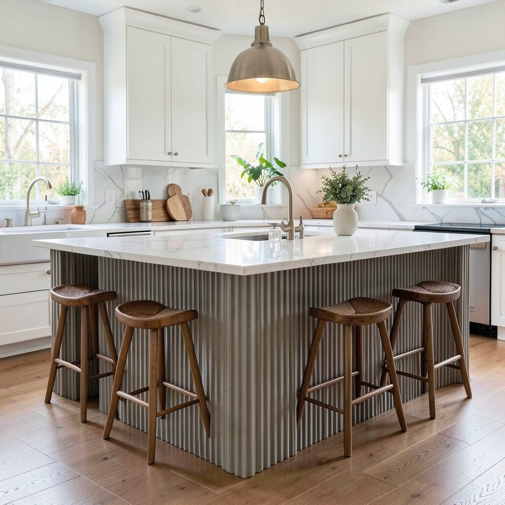 A fluted island has slim ridges that add texture and movement. It feels soft, fancy, and a little bit fashion-forward.
