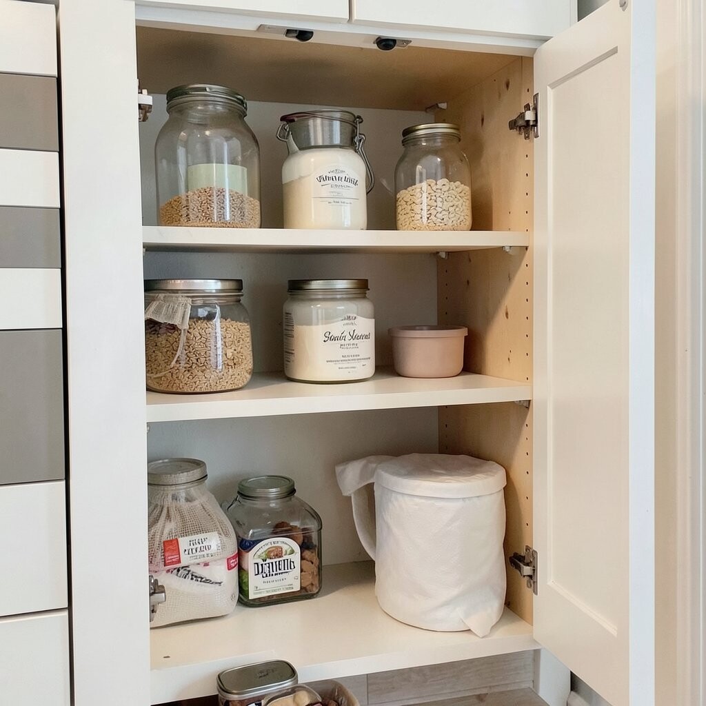 This idea is perfect for creating a uniform look in your pantry. Choose containers in various sizes to accommodate different items. They’re an affordable solution that adds a touch of order and elegance.