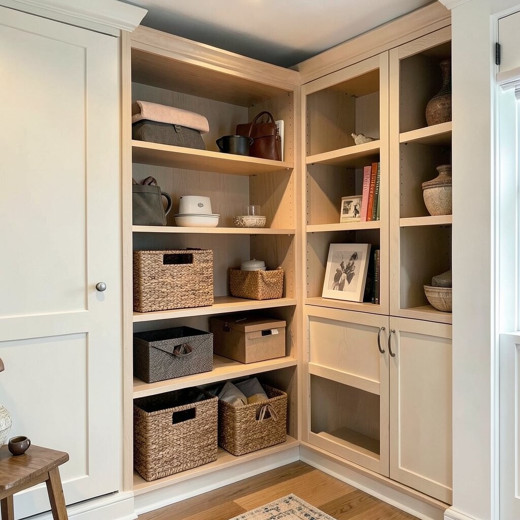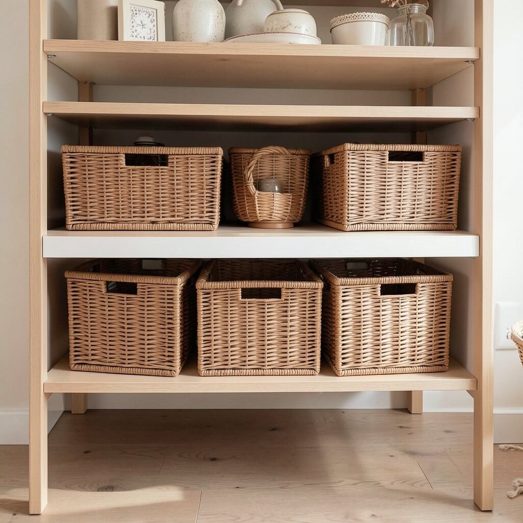 Under-shelf baskets add extra storage without taking up additional space. They fit under shelves, creating a spot for smaller items like snacks or dish towels. This simple addition makes a big difference in organization.
