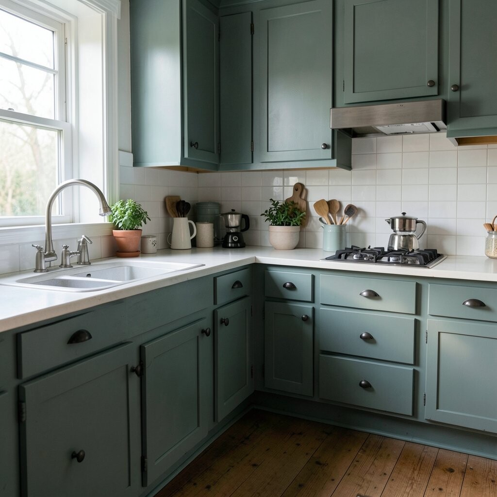 This color works well with white trim, woven textures, and light wood. It is a great pick if you want the kitchen to feel relaxed and easy.