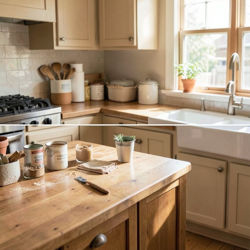 For a personal touch, add woven textures and clay pots nearby. It is a smart, low-cost way to make a basic kitchen feel layered and full of character.