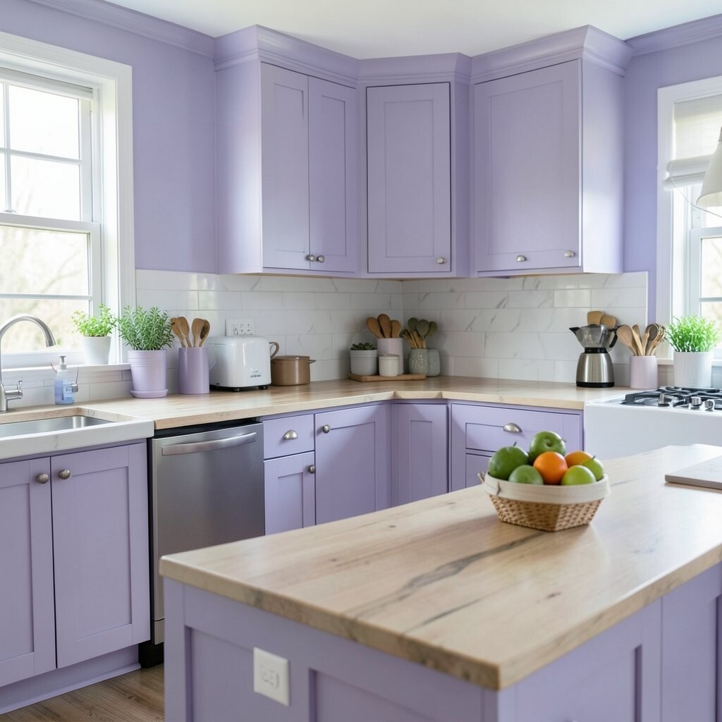 Soft lavender gives the kitchen a sweet and dreamy look. It feels light and a little magical, but still calm enough for daily life.
