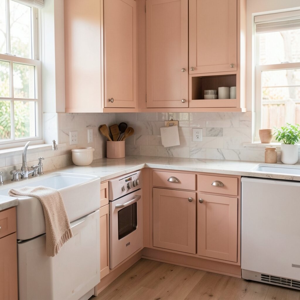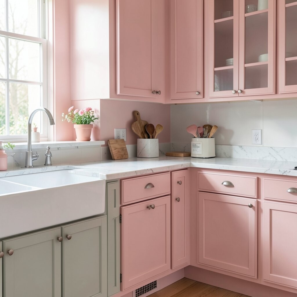 Blush pink can make a kitchen feel sweet, soft, and a little playful. It brings a gentle charm that feels fresh without being too bright.