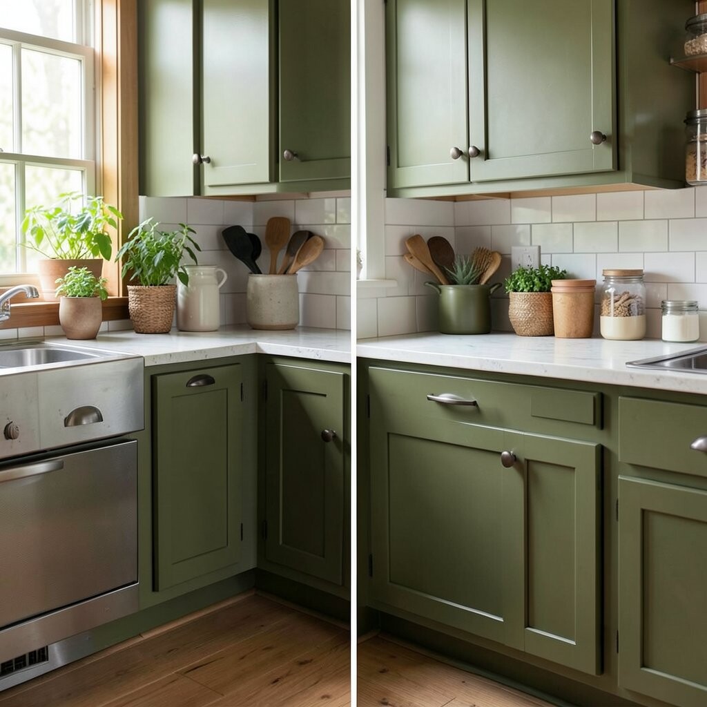 Olive green gives the kitchen a rich, earthy feeling. It feels grounded and cozy, almost like bringing the outdoors inside.