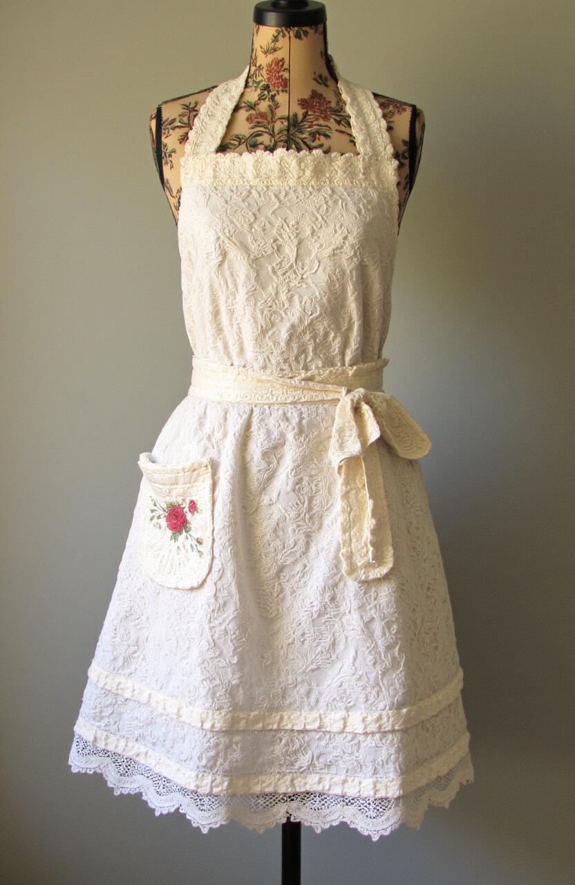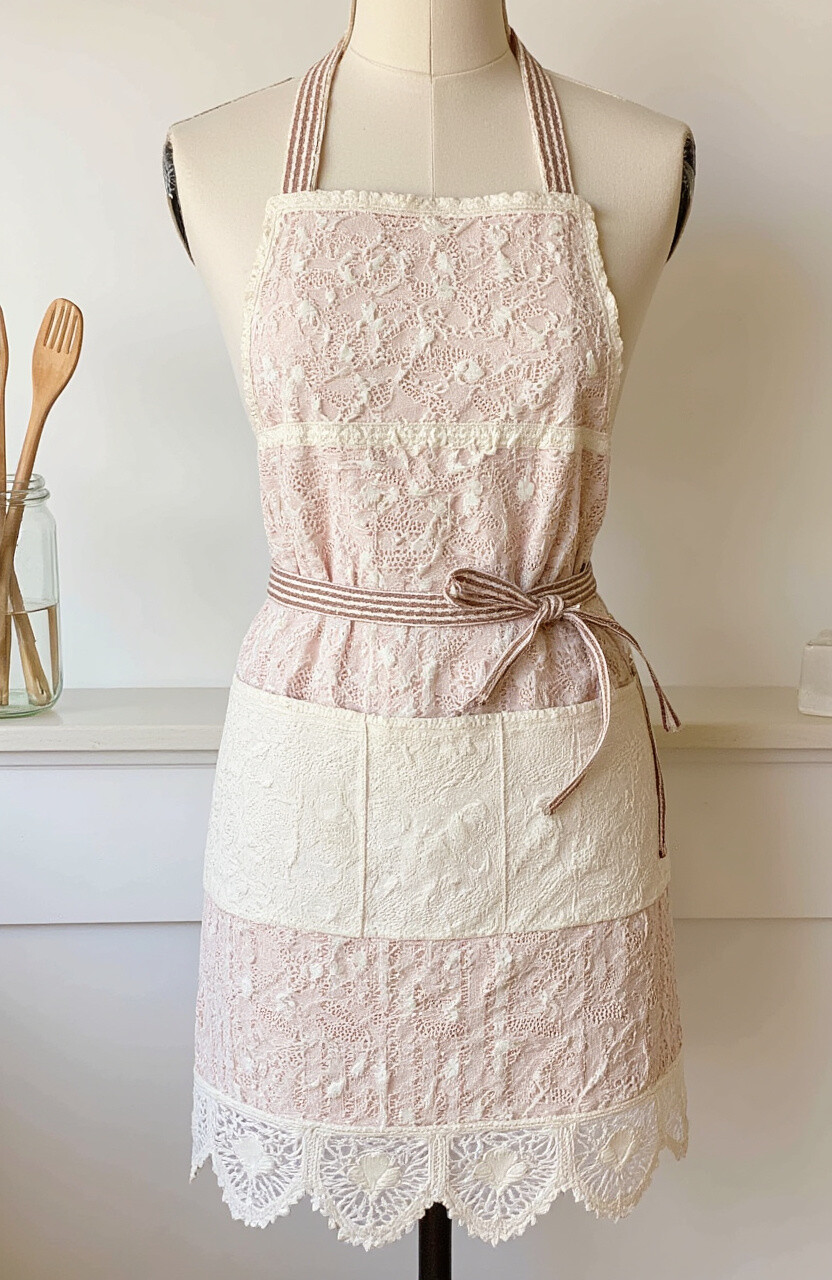 Rustic farmhouse lace aprons are ideal for those who love the country-style kitchen. They often come with ruffles and earthy colors.