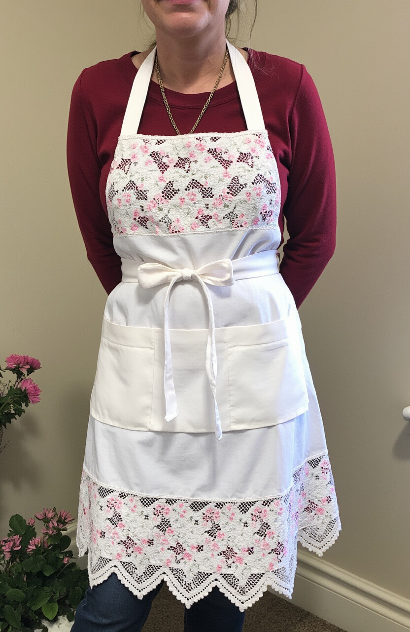 Imagine a lace apron that feels like a walk through a country garden. These aprons feature floral patterns and soft colors.
