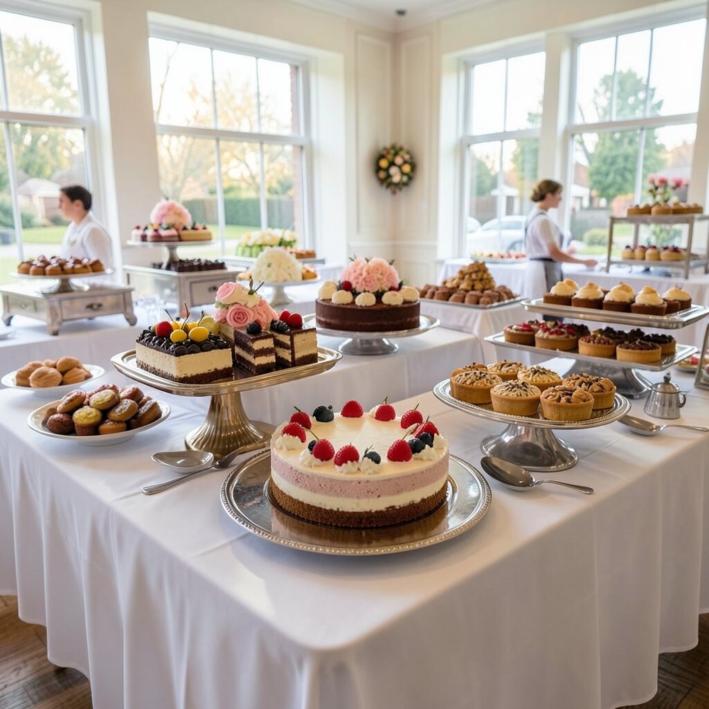 Cakes, pastries, and candies create a sweet wonderland. This buffet is a sugar lover’s paradise.