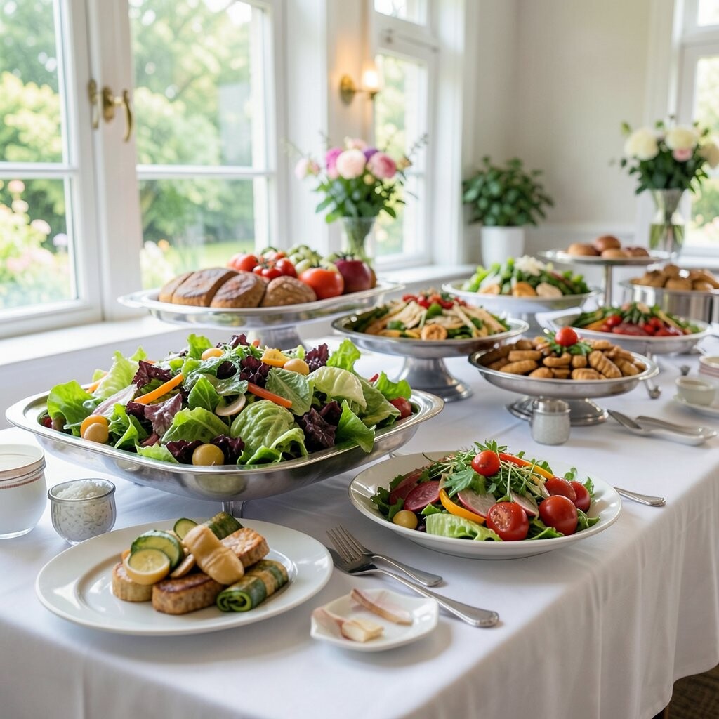 The benefit is the healthiness and customization. Personalize with seasonal vegetables and nuts. It’s fresh, light, and perfect for health-conscious guests.