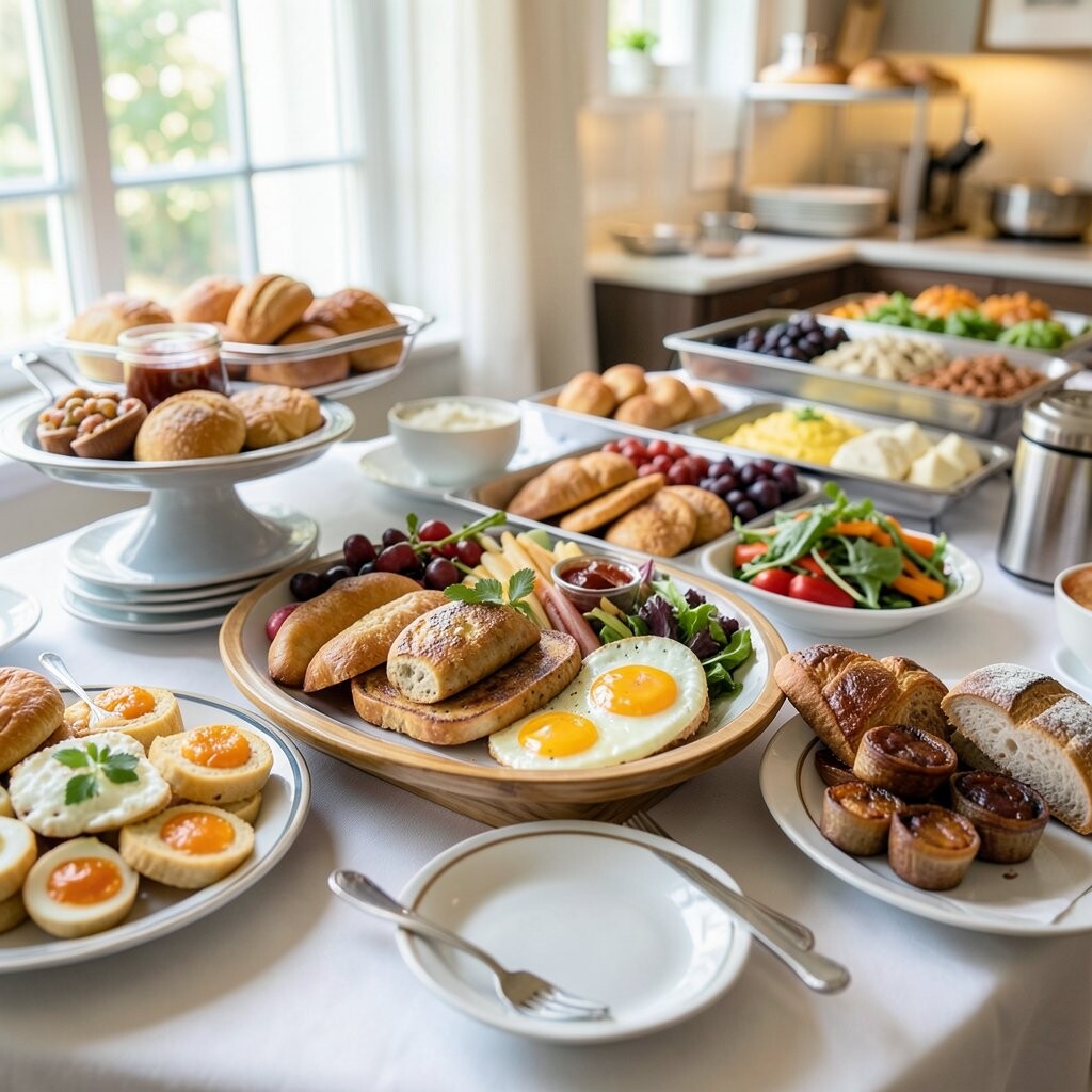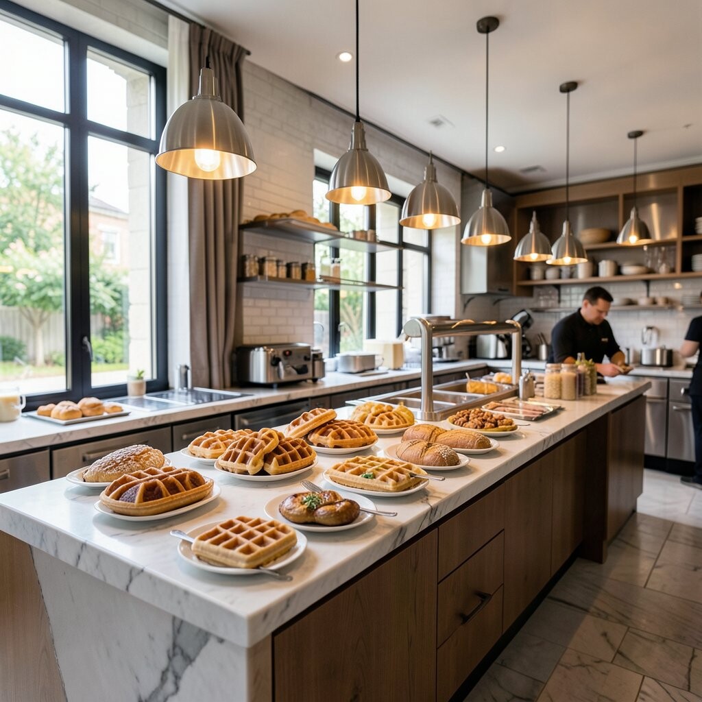Golden waffles with an array of toppings make breakfast special. This buffet is cozy and comforting.