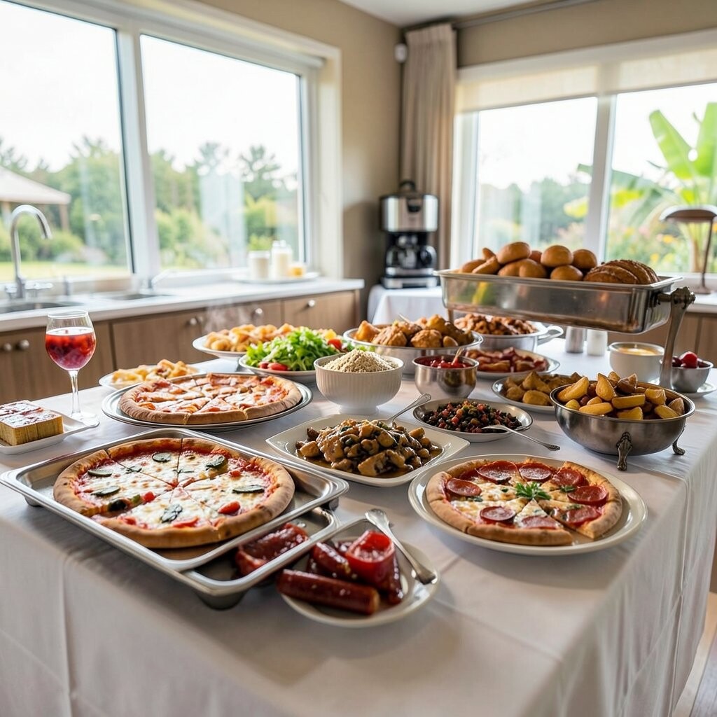 The benefit is the personal touch, as everyone creates their masterpiece. Offer gluten-free pasta for inclusivity. This buffet is budget-friendly and filling.