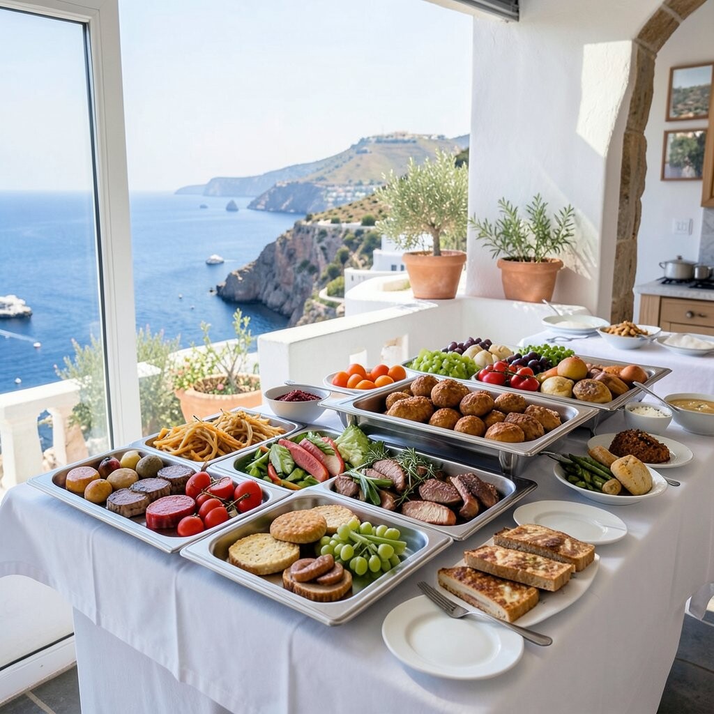 Feta cheese, olives, and grilled meats transport guests to Greece. This buffet is flavorful, with Mediterranean charm.