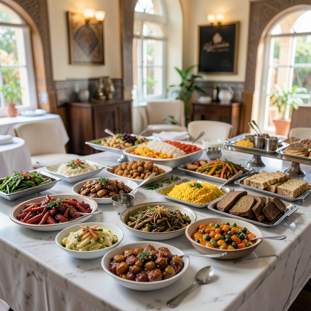 Think of hummus, falafel, and tabbouleh, all in one spread. This buffet is fresh and healthy, with a touch of the exotic. It’s a vibrant display of colors and flavors.