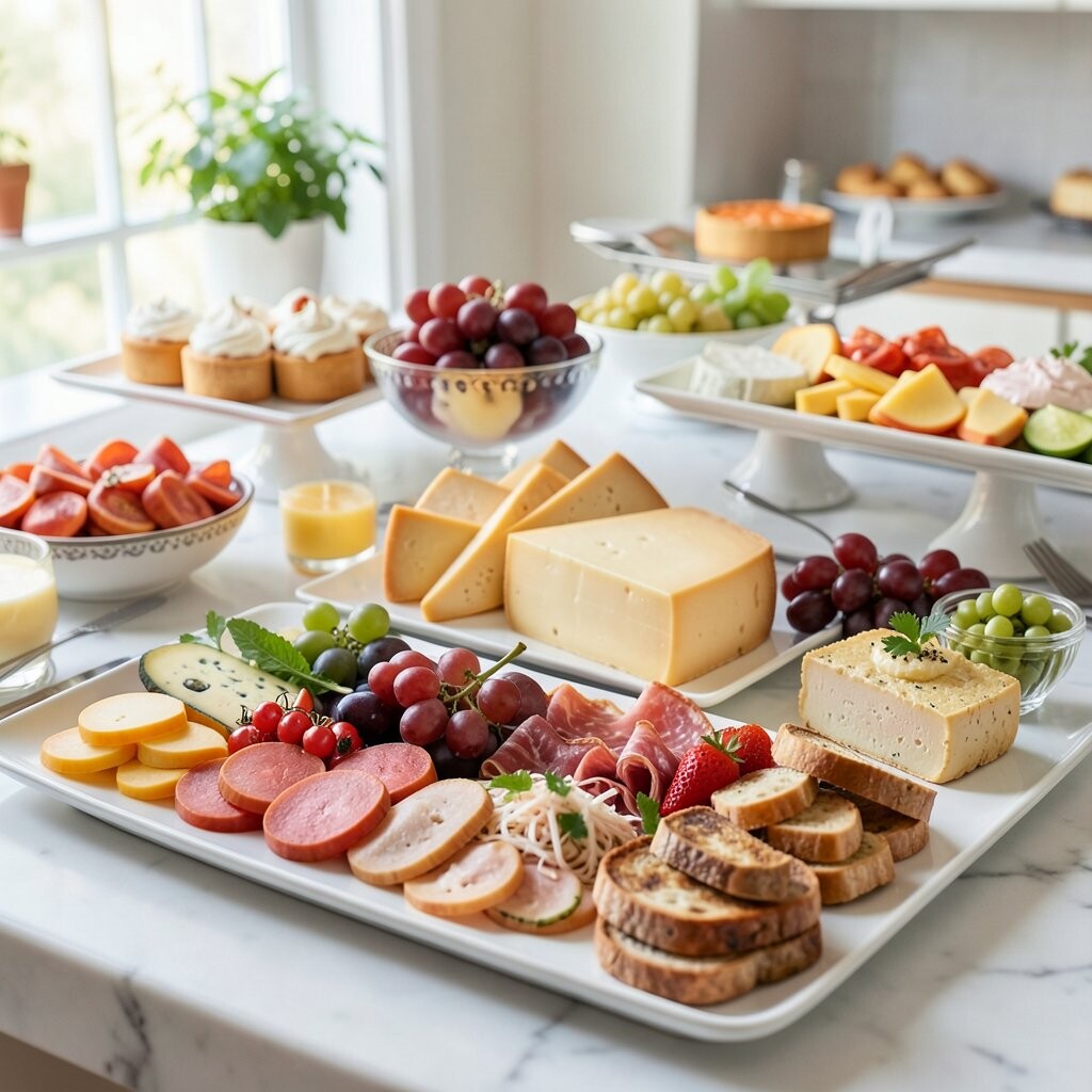 Stacks of gourmet cheeses and cured meats make an irresistible display. Add fresh fruits, nuts, and honey for a balanced spread. It’s a feast for the eyes and the palate.