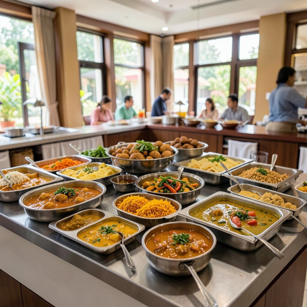 It’s unique because of the exotic flavors and aromas. Personalize with spice levels to cater to all palates. This buffet is both comforting and adventurous.