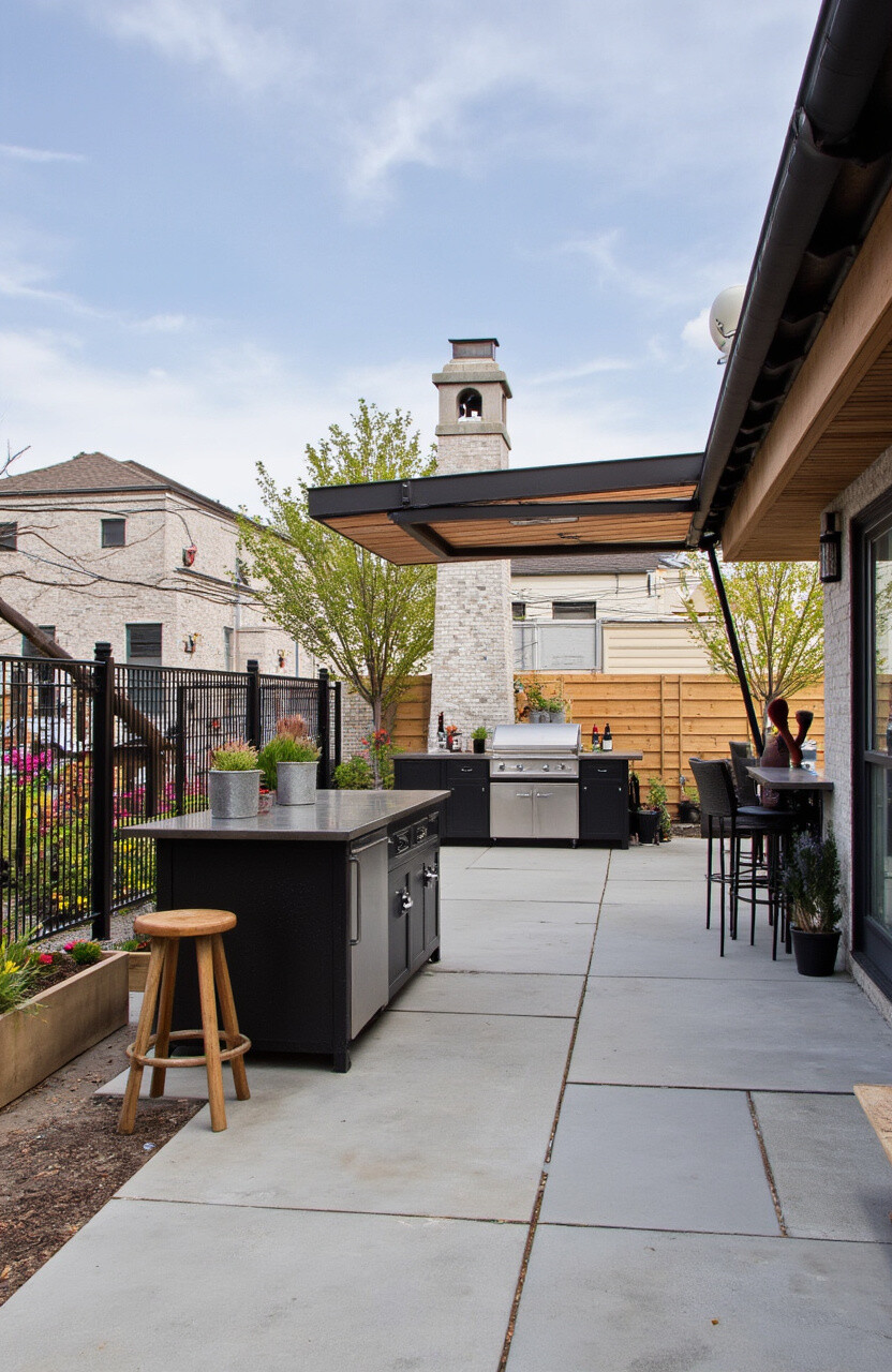 A deck kitchen with industrial elements such as metal and concrete is both stylish and functional. It brings a city vibe to any home.