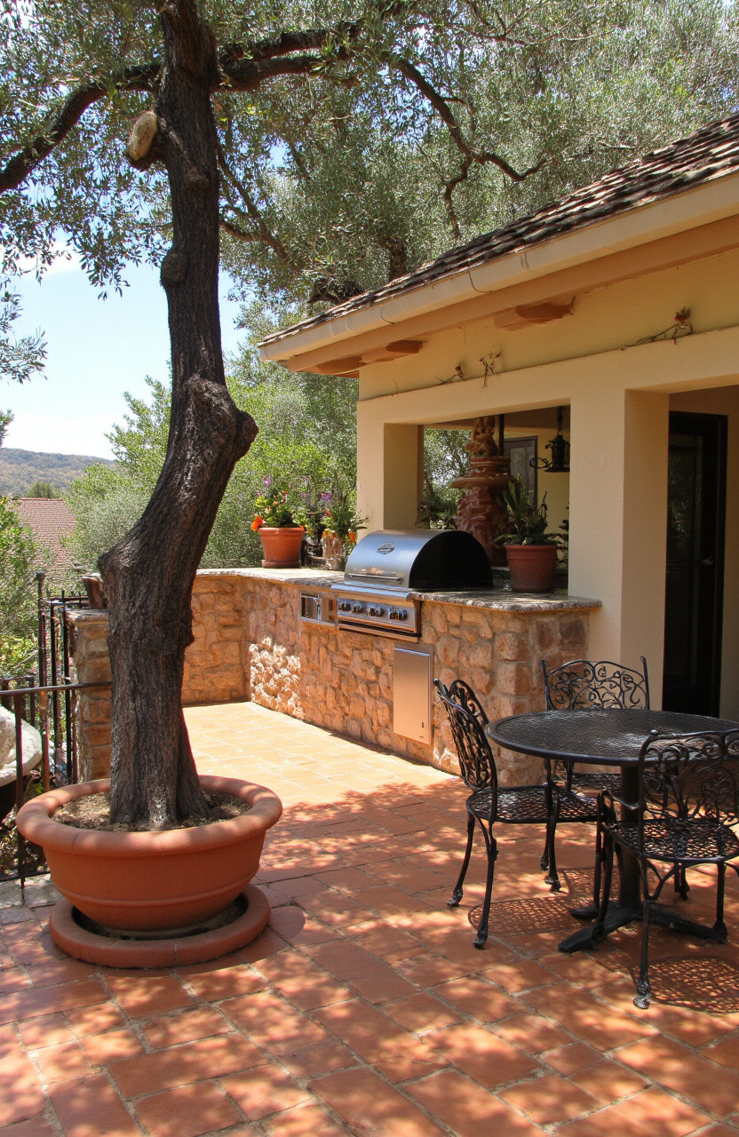 Transport yourself to the Mediterranean with a deck kitchen filled with terracotta tiles and wrought iron features. Olive trees and grapevines add authenticity.