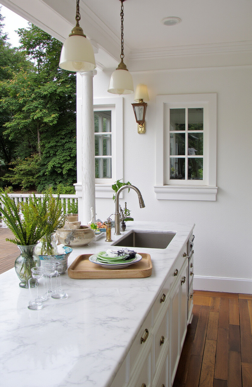 A timeless deck kitchen with classic design elements like marble countertops and elegant lighting never goes out of style.