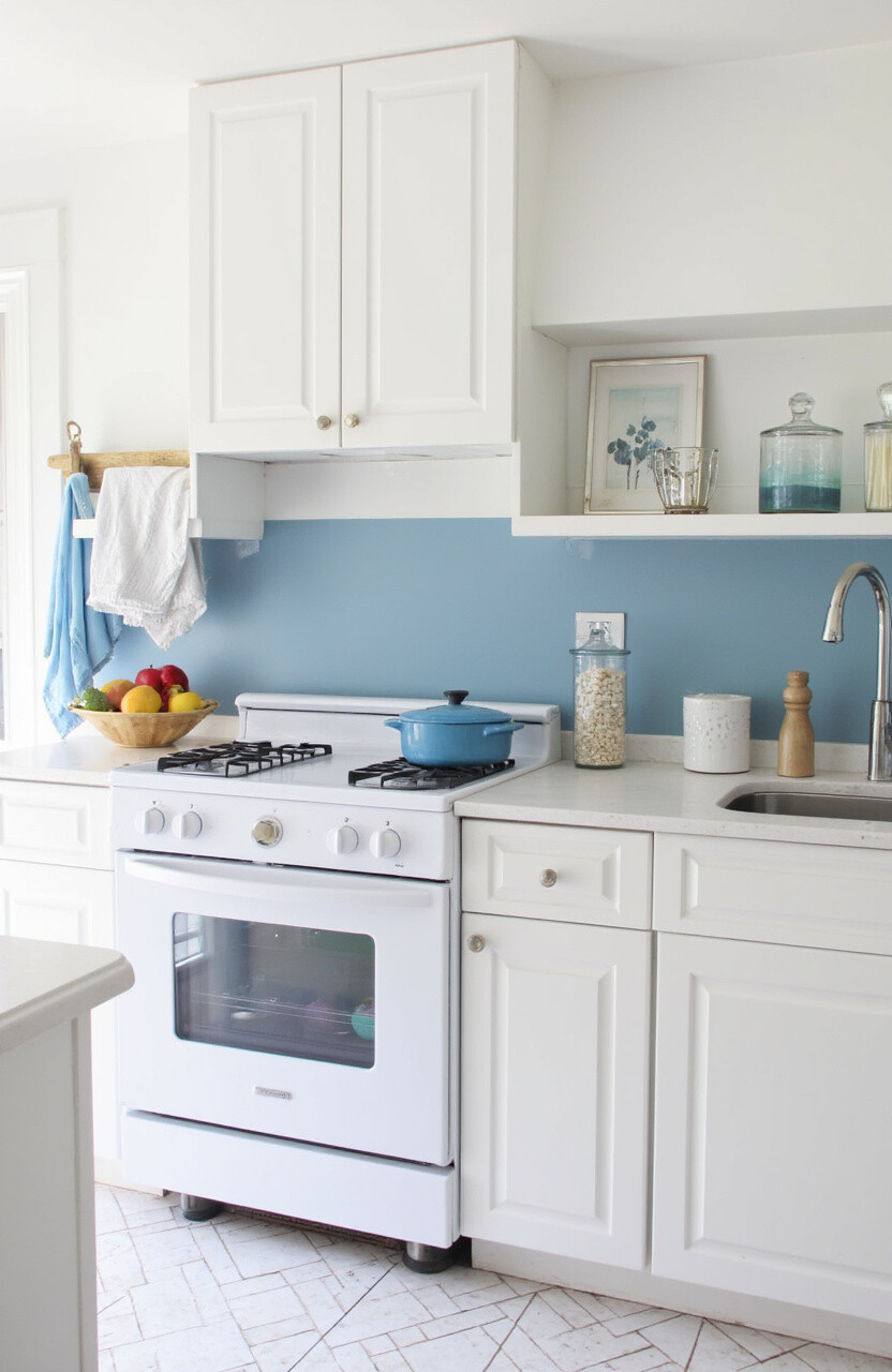 You can introduce blue through kitchen towels, cookware, or even a painted accent wall. It adds a pop of color without overwhelming the space.