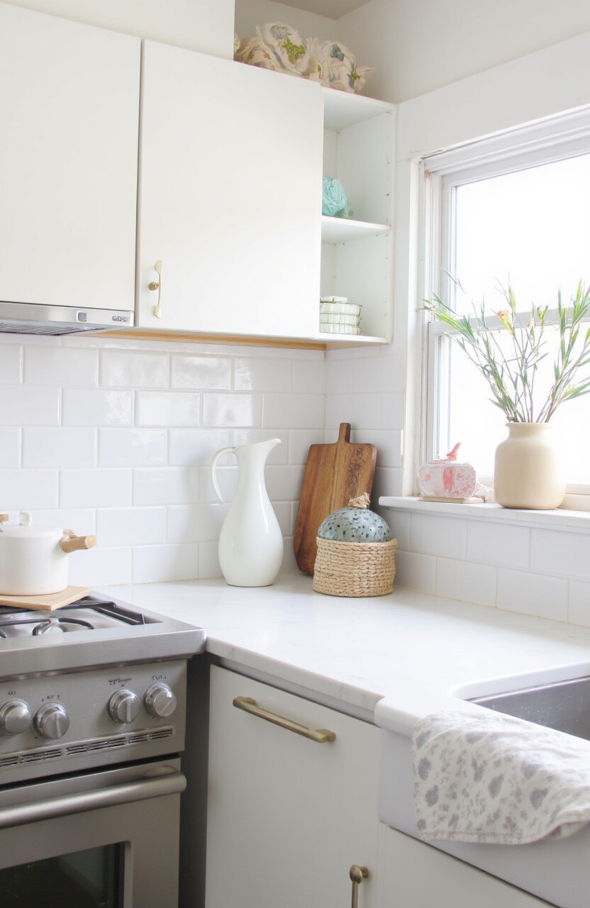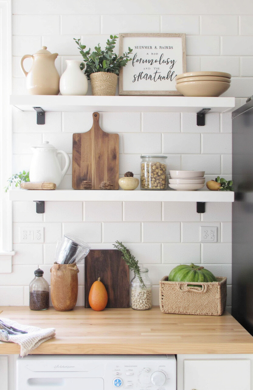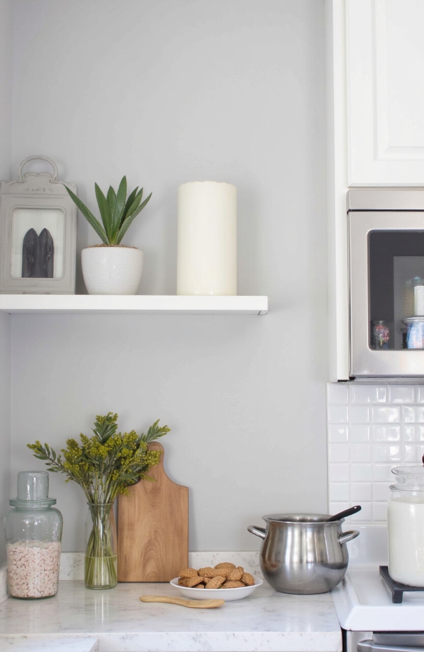 Matte shelves look sleek and modern, and they won’t reflect light, which can help your kitchen feel more grounded and calm.