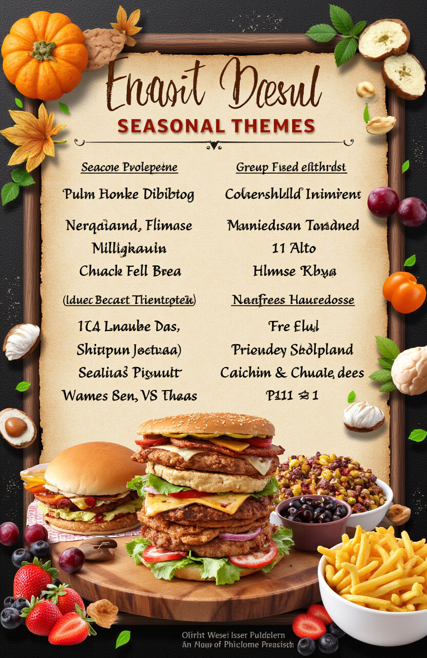 Seasonal themes offer endless creativity and allow you to showcase seasonal ingredients. It’s a great way to keep your menu dynamic and your customers engaged. Plus, it gives you the chance to experiment with new flavors and ideas!