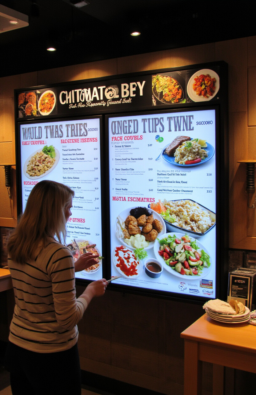 Bring technology to the table with interactive digital menu boards. These screens can display dynamic content, from animated graphics to videos of your dishes being prepared. It’s a fantastic way to engage customers and showcase your offerings in a modern way.