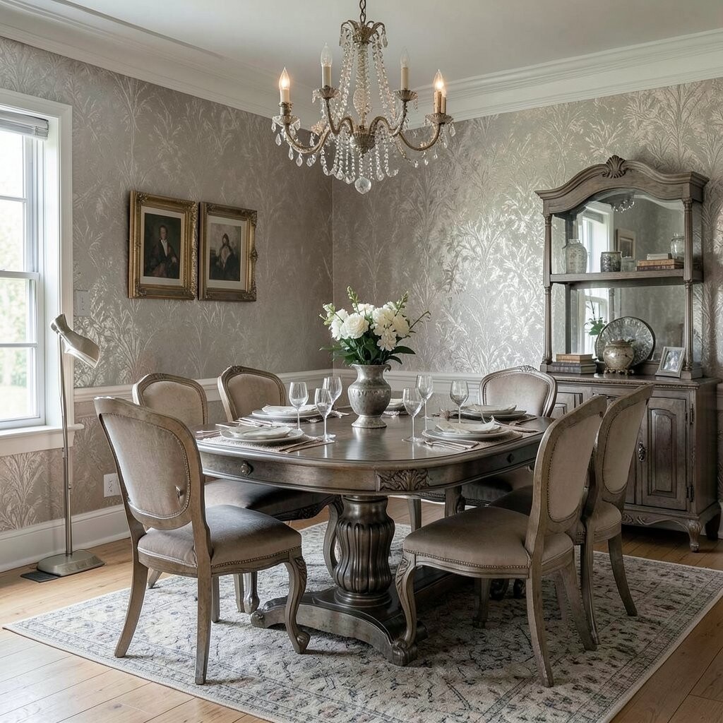 Metallic wallpaper can add a touch of glamour to your dining room. It reflects light beautifully and creates a luxurious feel.