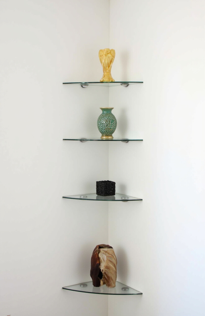 Glass corner shelves are a sophisticated addition to your space. Their transparent design and sleek finish create a modern, elegant look. These shelves are perfect for displaying delicate items like glassware or collectibles.
