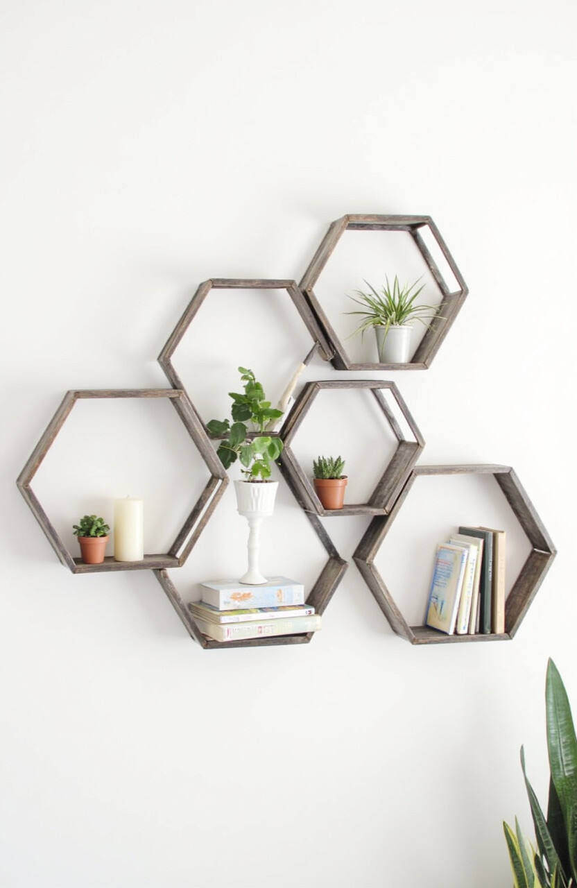 Crafted from materials like wood or metal, they offer a trendy, industrial vibe. Fill them with small plants, candles, or books for a personalized touch. Stack multiple hexagons for a beehive effect that buzzes with character.