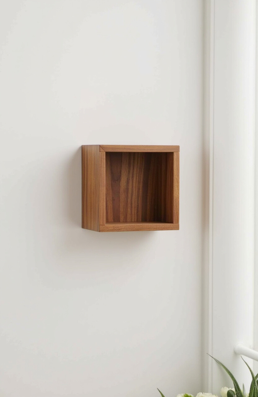 The floating wooden cube shelf is like a magic trick for your walls. It seems to hover in mid-air, giving your room a touch of mystery. Made from rich, warm wood, it’s perfect for displaying small plants or cherished keepsakes.