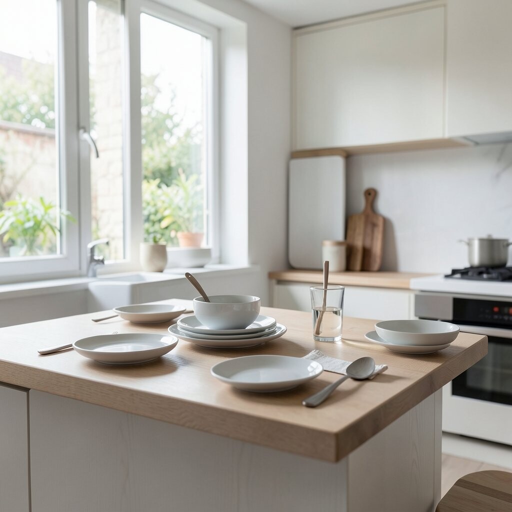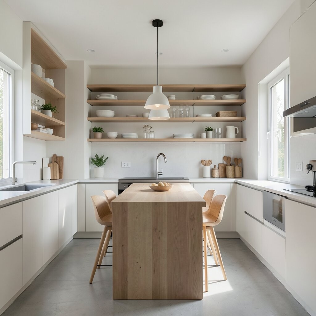 A minimalist kitchen island offers additional workspace and storage without dominating the room. Choose simple lines and a neutral color to match the rest of your kitchen.