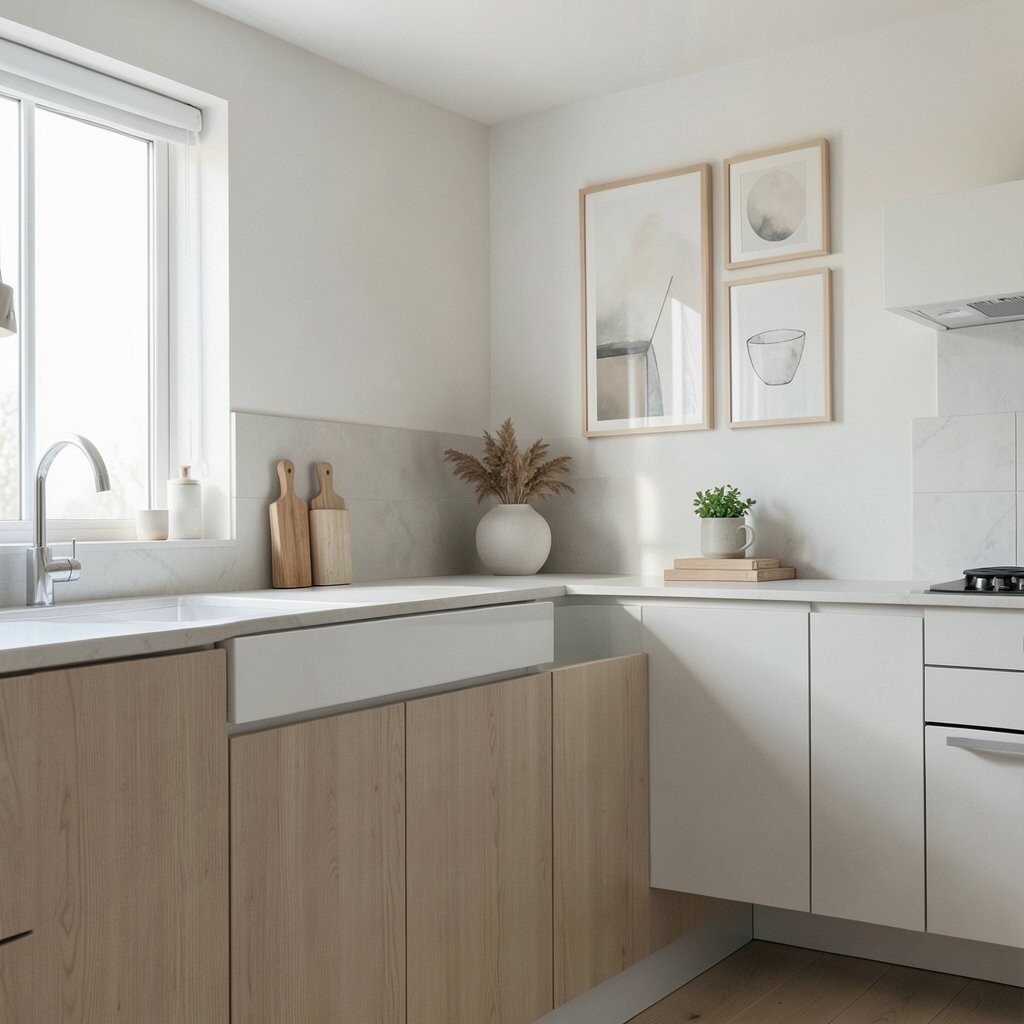 Minimalist wall art can add personality to your kitchen without being overwhelming. Choose simple prints or abstract designs in soft colors.