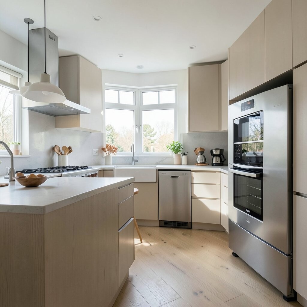 Hidden appliances create a seamless look, making your kitchen appear uncluttered. Integrated fridges and dishwashers blend into cabinetry for a streamlined effect.