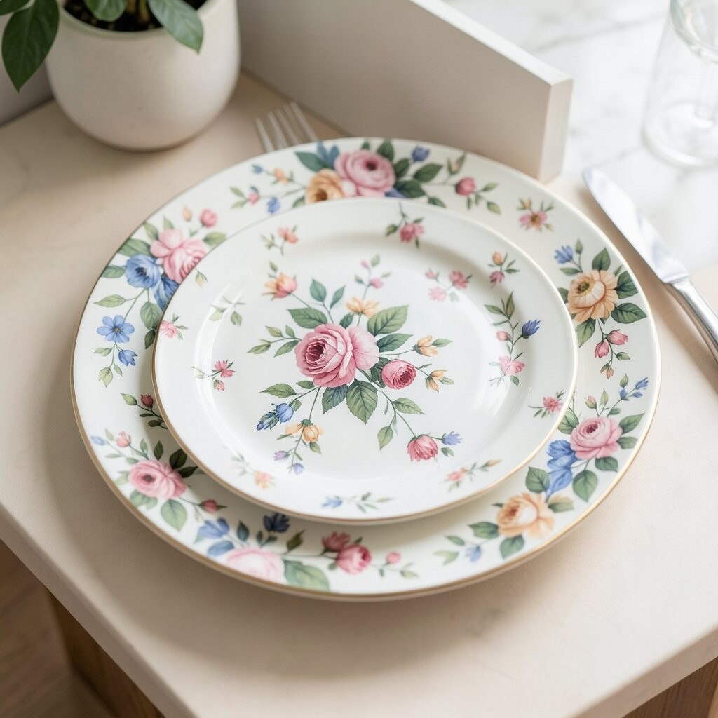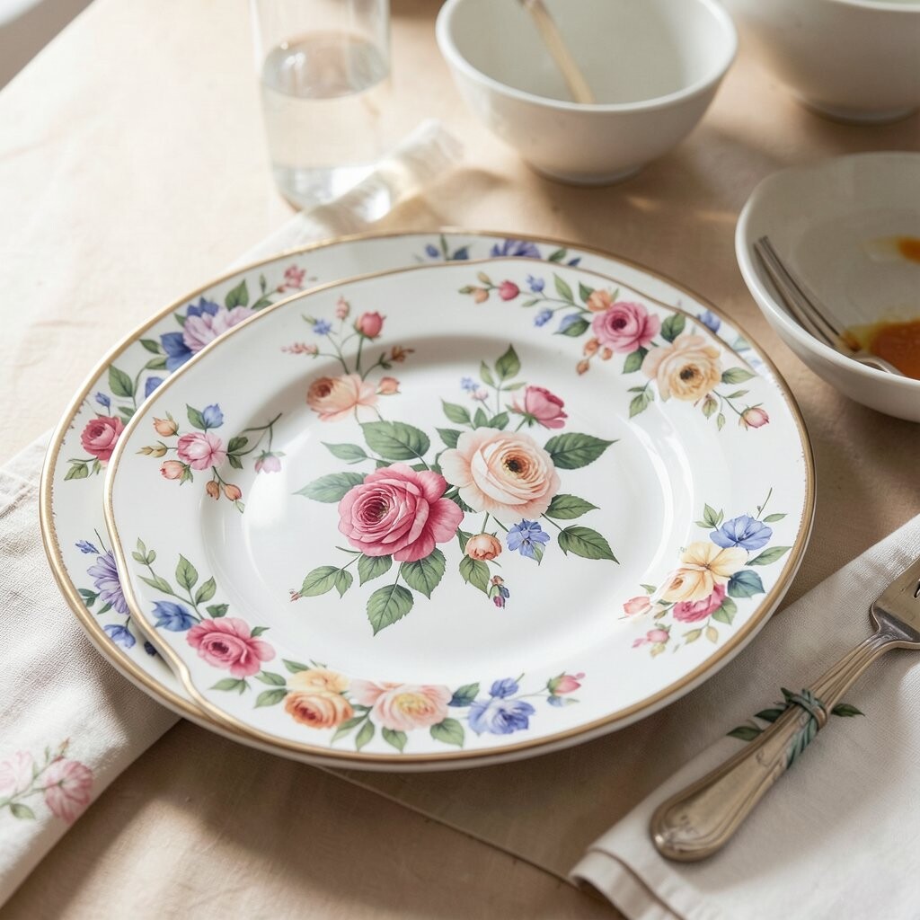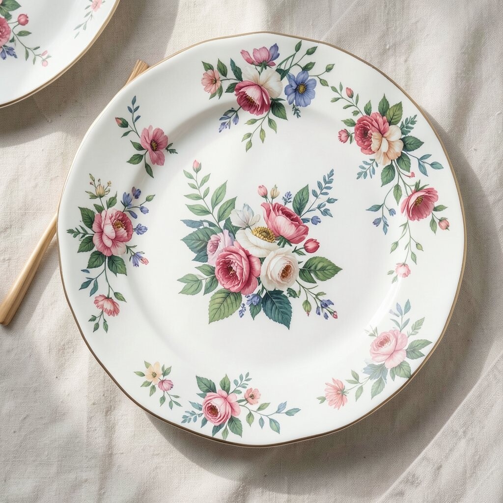Plates with bold floral patterns benefit from contrasting elements. Use simple, solid-colored napkins and glassware. This balance prevents the table from looking too busy.