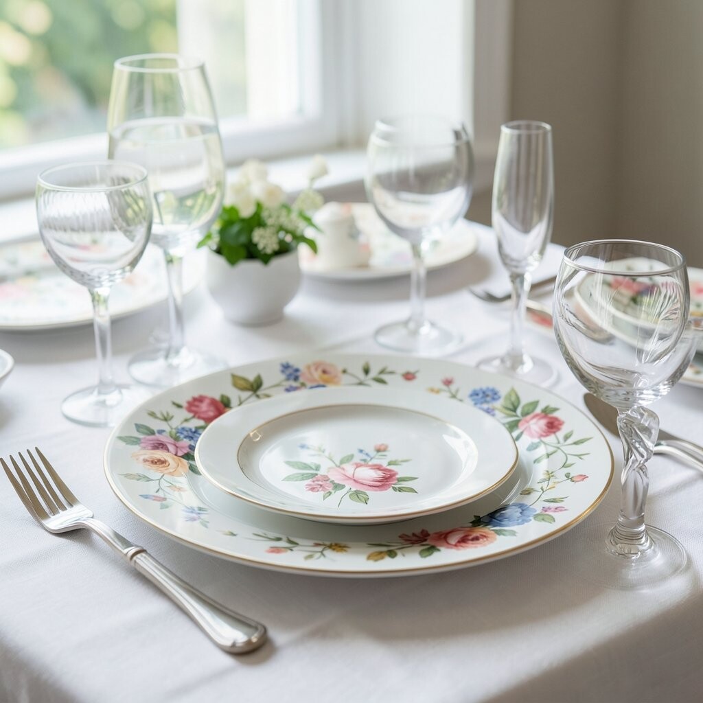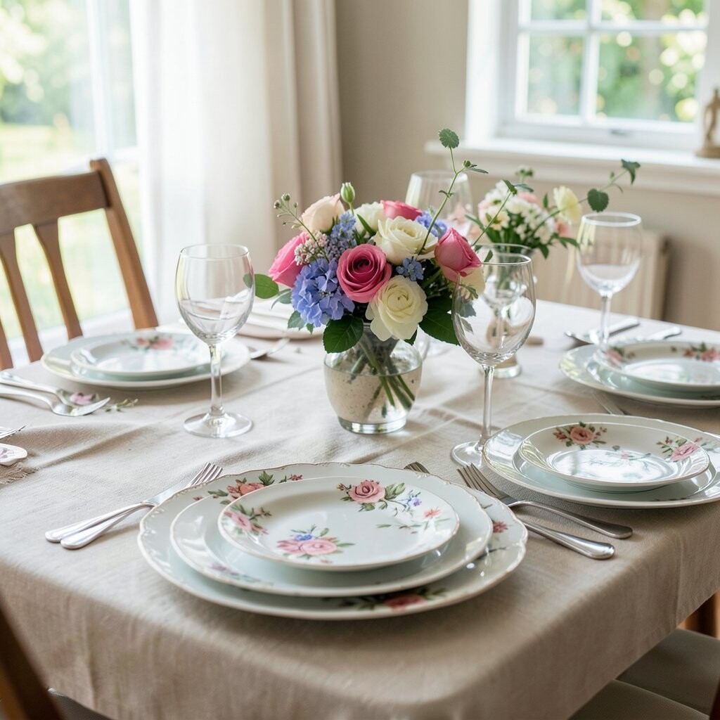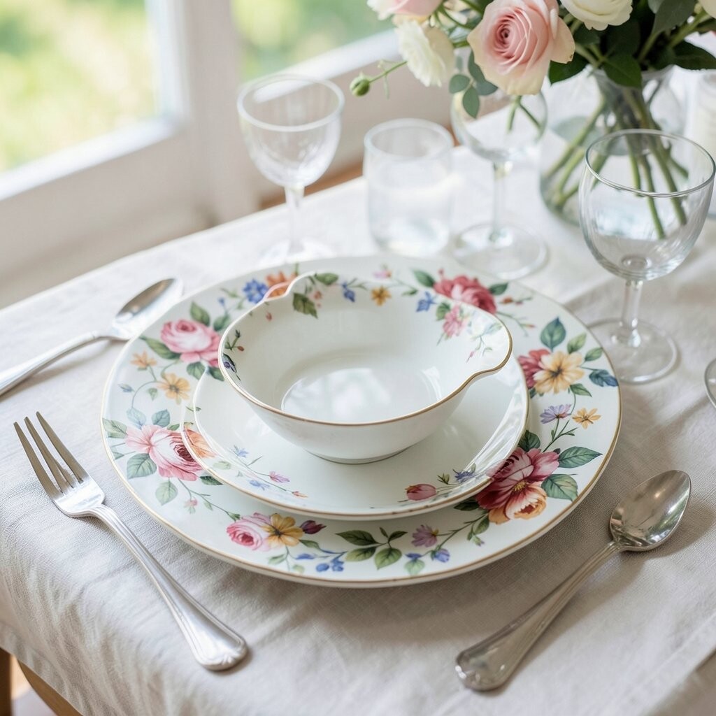 Plates with bold floral patterns benefit from contrasting elements. Use simple, solid-colored napkins and glassware. This balance prevents the table from looking too busy.