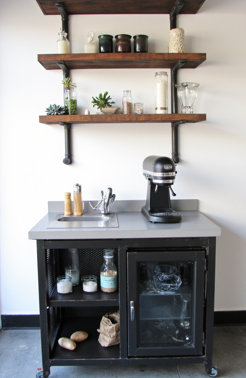 For those who love a bit of edge, an industrial chic mixer station might be just right. Think metal shelves, exposed pipes, and a concrete countertop. It’s rugged yet stylish.