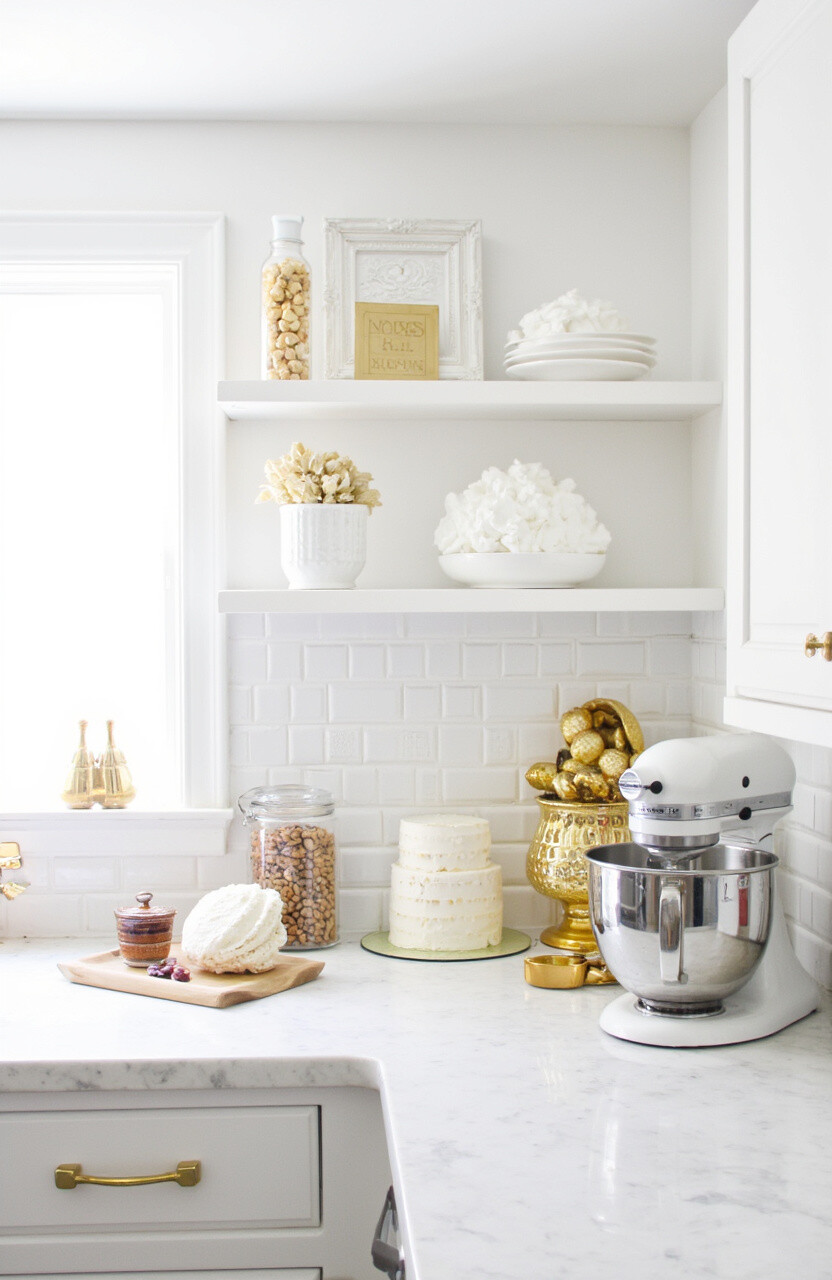 Add a touch of luxury with gold accents at your mixer station. Gold handles, fixtures, or even a golden mixer can make a stunning statement.