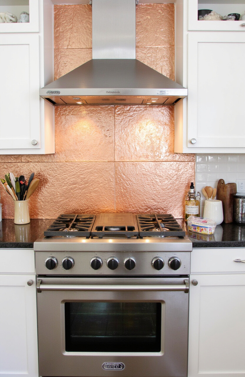 Consider using copper tiles or sheets, and pair them with wood or neutral tones for a balanced look.