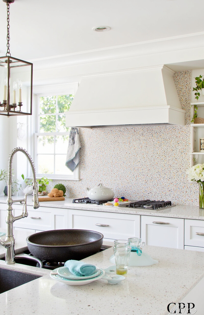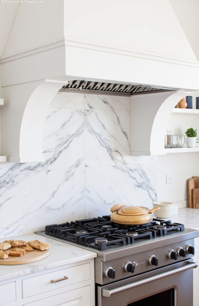 To save on cost, consider a marble-look tile or use it as a focal point behind your stove.
