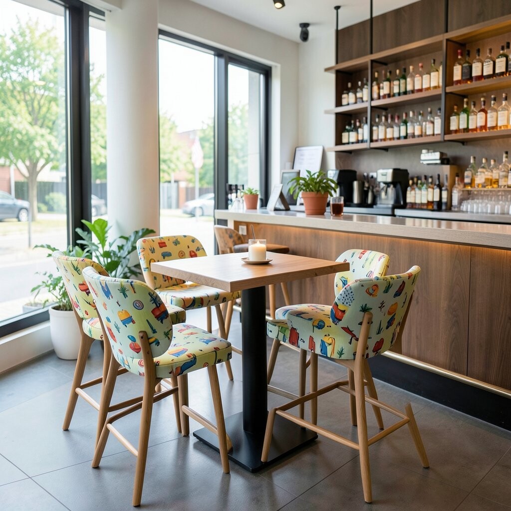 Bar stools with playful patterns can add a fun and lively touch. Think stripes, polka dots, or geometric prints.