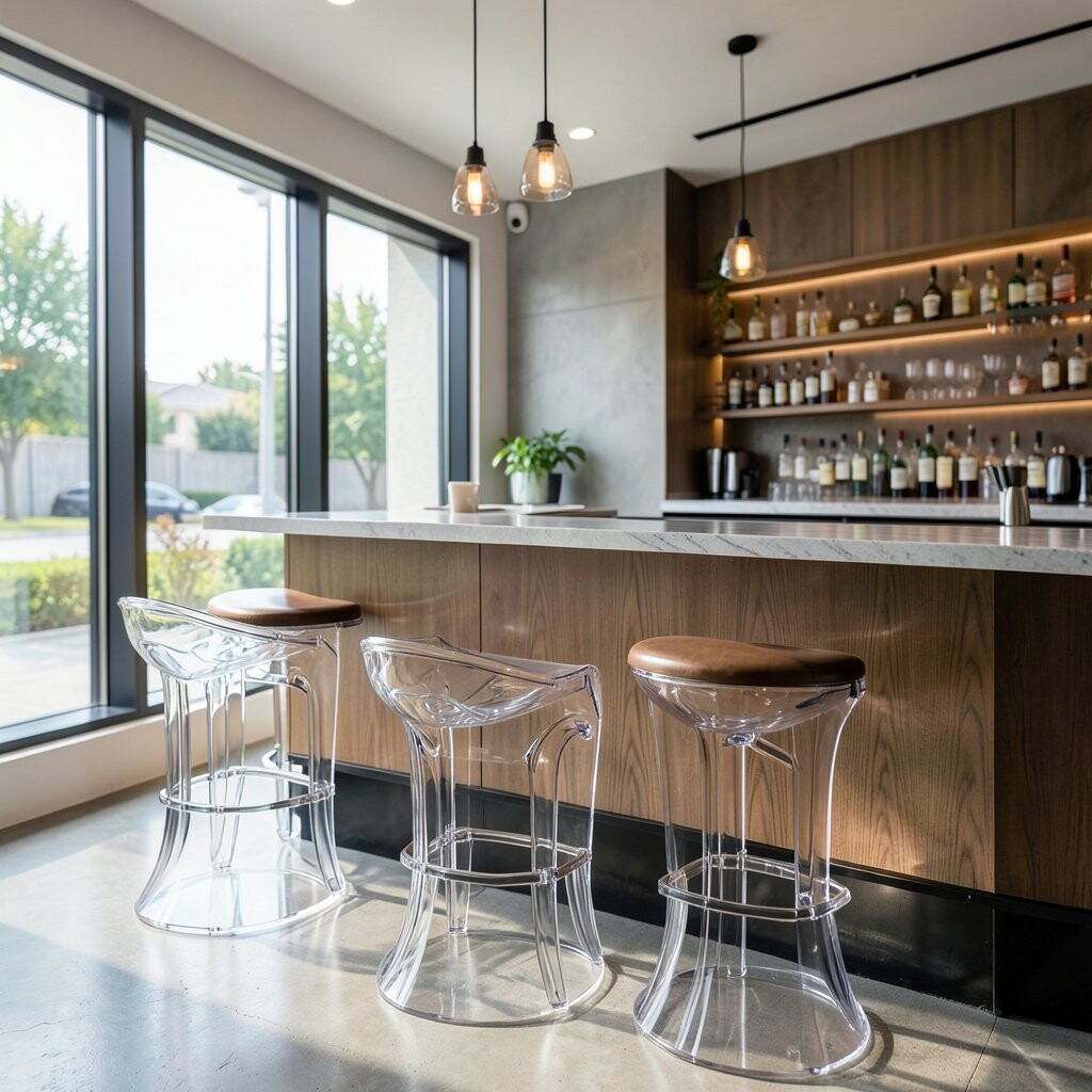 Acrylic ghost stools are perfect for creating a sense of spaciousness. Their transparent design allows them to blend seamlessly with any decor.