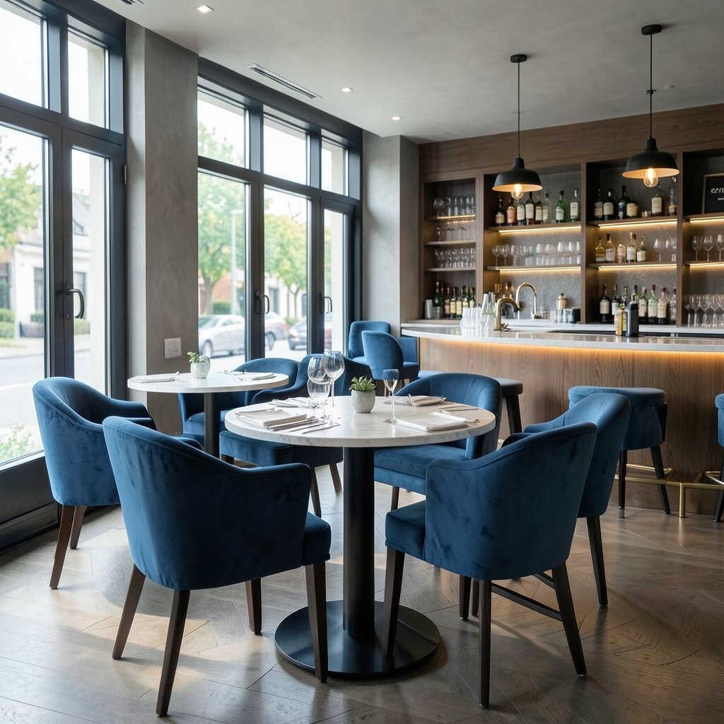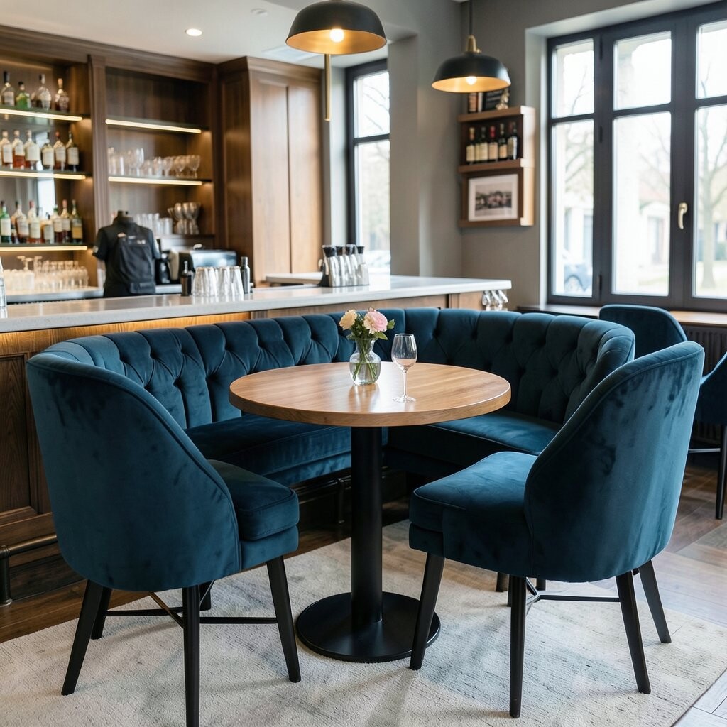They come in rich colors like emerald green or royal blue. Use them to create a luxurious atmosphere in your bar area.