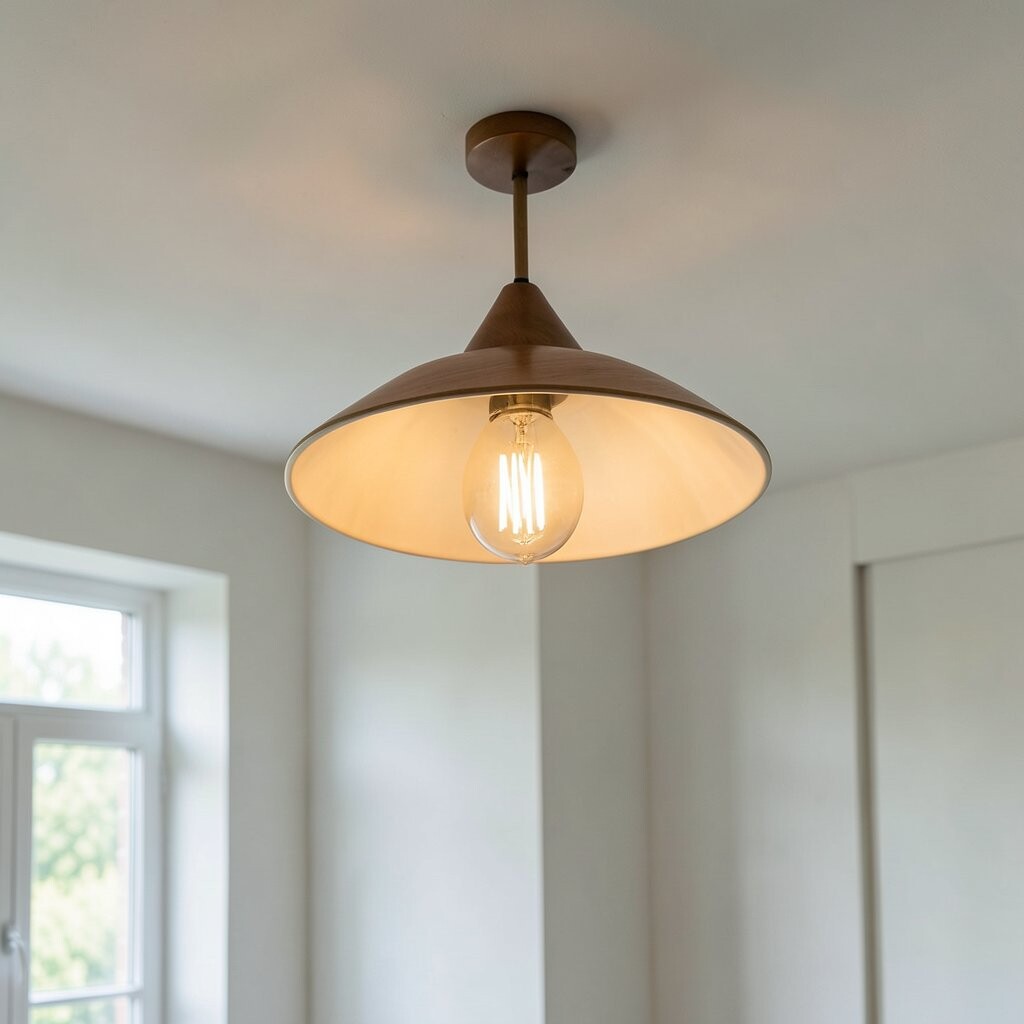 This lamp is a smart pick for kitchens, hallways, and dining spaces because it focuses light downward. It is unique because the dark color makes the shape stand out, especially in rooms with light walls or pale wood.