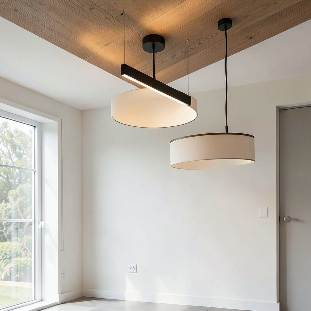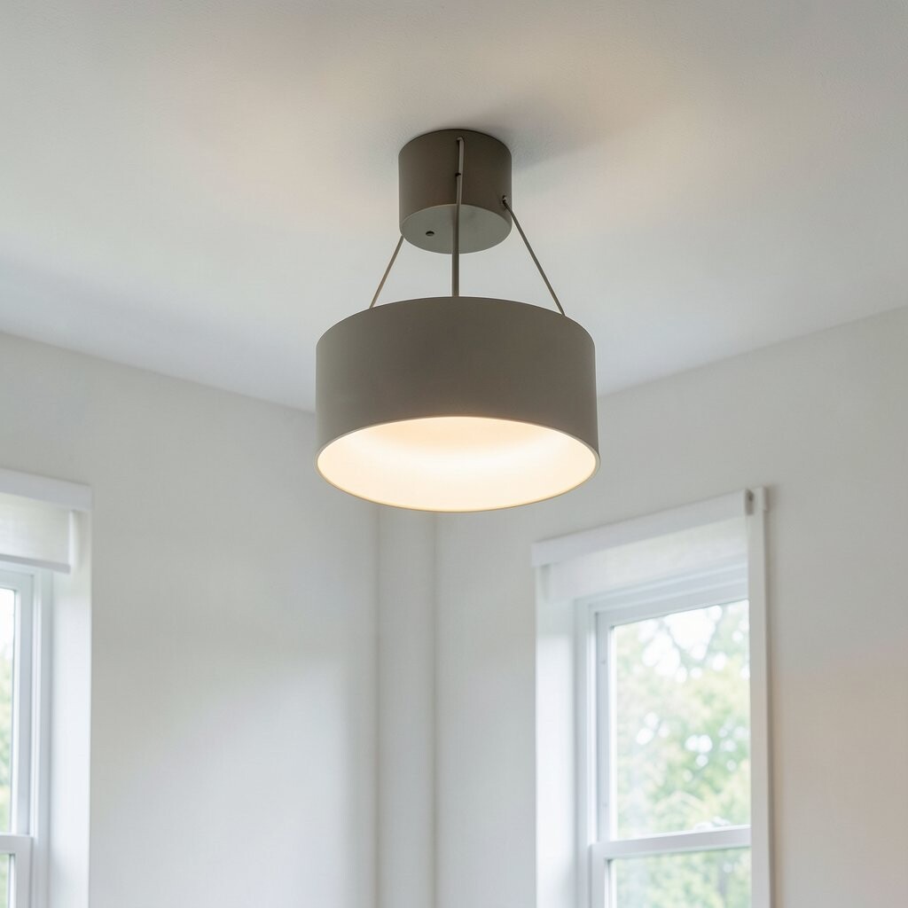 A floating disc lamp looks smooth, slim, and very modern. It seems to hover close to the ceiling, giving the room a clean and futuristic touch.