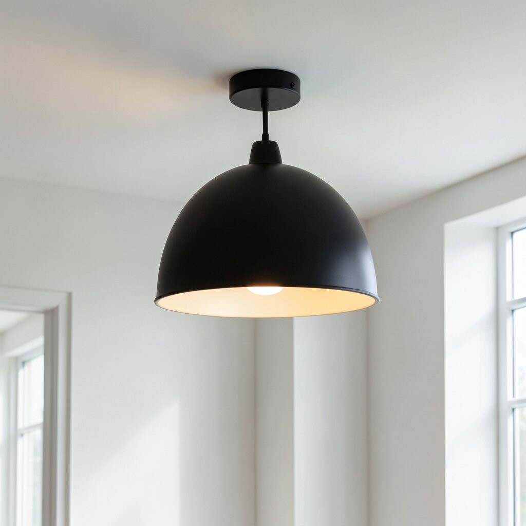 A black dome lamp is bold, smooth, and very modern. It gives a strong shape to the ceiling and can make a room feel more stylish right away.