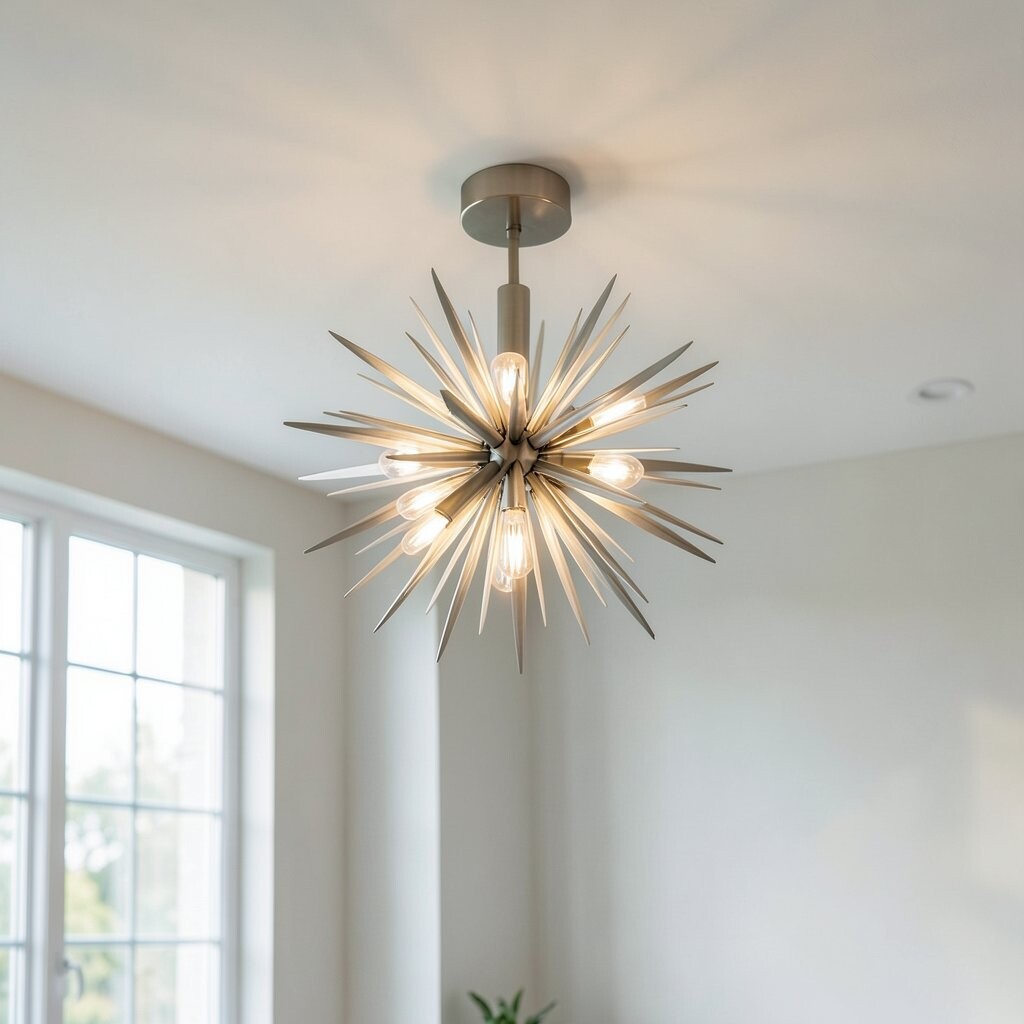 A starburst flush mount lamp feels lively and full of personality. The shape spreads outward like rays of light, giving the ceiling a fun and bold look.
