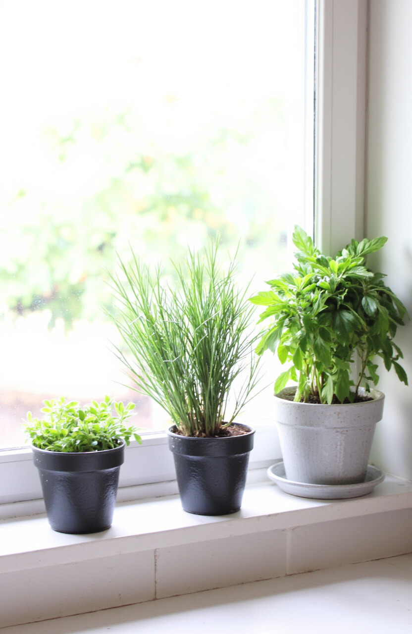 A windowsill herb garden is both beautiful and practical. Fresh herbs add flavor to meals and greenery to your space.